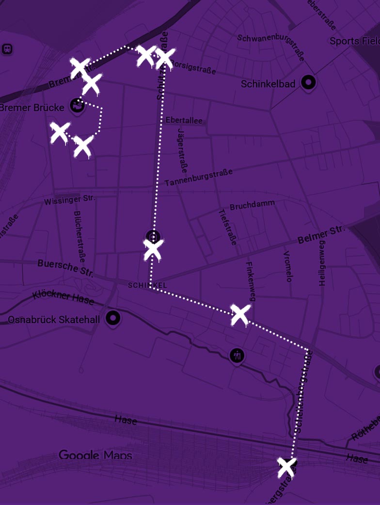 Ausgehend vom Stadion an der Bremer Brücke, entstand so ein Stadtteilrundgang , der speziell die Situation von Jugendlichen während der Zeit des Nationalsozialismus in den Blick nimmt und sich vor allem an jugendliche Nutzerinnen und Nutzer richtet. Anhand von historischen Orten werden Biografien und Schicksale sowie die (Über-)Lebensbedingungen von jungen Menschen in der NS-Zeit thematisiert. Der Fußball hat ebenfalls eine NS-Geschichte. Er war damals schon ein Ort der Begegnung, aber eben auch ein Ort der Ausgrenzung. Der Startpunkt am Stadion des VfL Osnabrück nimmt darauf Bezug und leitet den Rundgang ein.